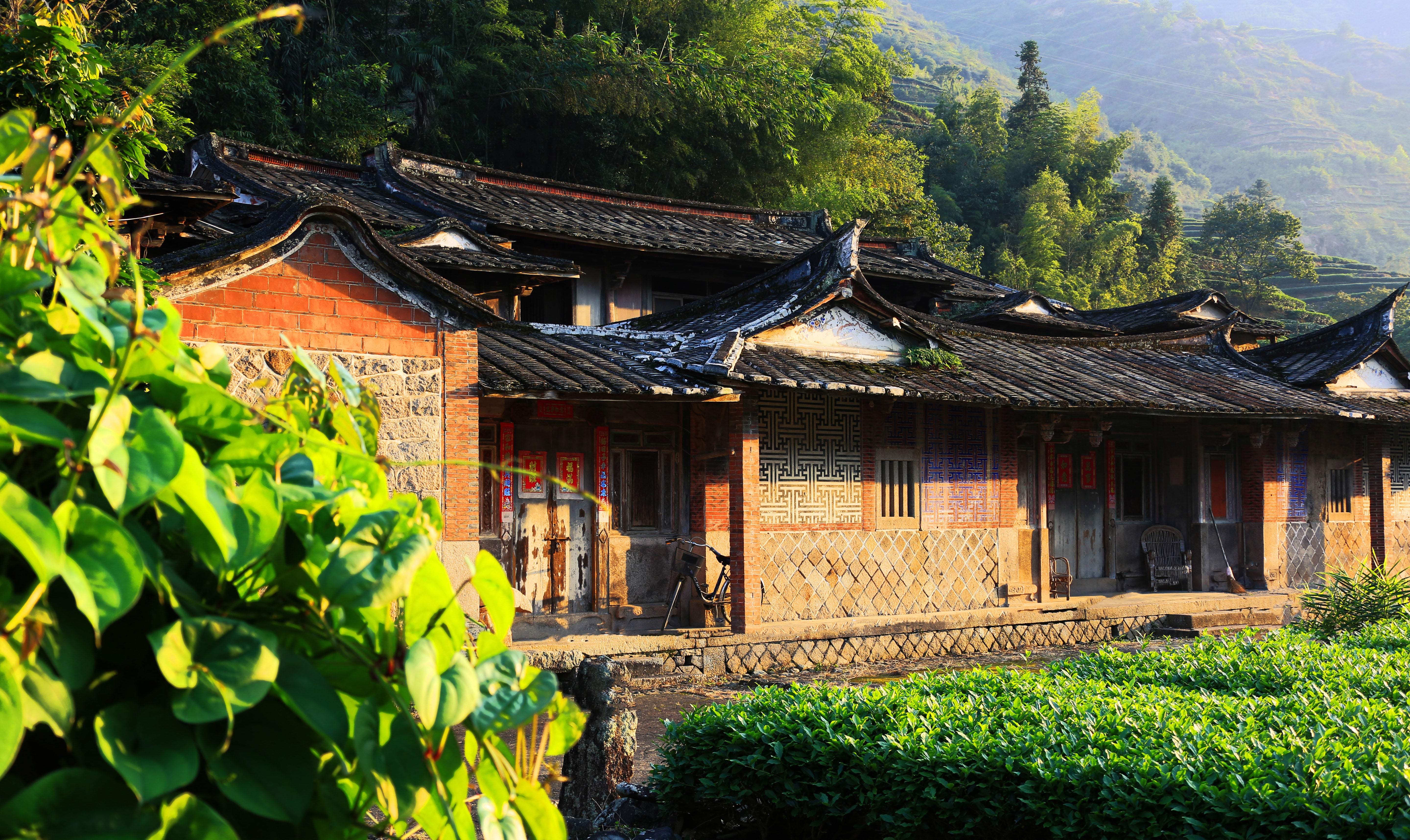 To reach Wei Yuede's home in the mountains, one must pass through Rizhai—a place where ancient houses are closely connected, forming a unique "日" (sun) shape. His mountain house is nestled among tea gardens, its roof ridge neat, its wooden windows and walls simple yet elegant, with delicate carvings. Each time Wei Yuede returns to his mountain house, he always offers tea to his ancestors with reverence. Outside the house, verdant peaks rise and sweet springs flow, shrouded in mist year-round—this is the very place where Guanyin (Avalokitesvara) appeared in a dream. The tea-growing culture here dates back nearly 4,000 years, and tea farmers have lived and thrived here for generations.